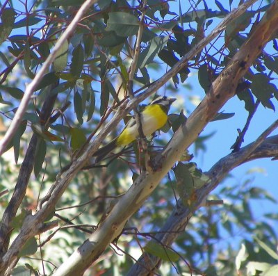 In the morning I was awoken to a dawn chorus which including a plethora of honeyeaters such Western Spinebill, Red Wattlebird, New Holland, Singing, White-cheeked, White-eared, Tawny-crowned, Western (White-naped), Yellow-plumed, Brown and Brown-headed Honeyeater. Many of these drank at the water bath near the office, the Australain (Western) Magpie (ssp dorsalis – with the female having a scalloped back), Red-capped Parrot, 28s, Weebill and Silvereye (ssp chloronotus [gouldi], with a sharply demarcated yellow throat and olive back).