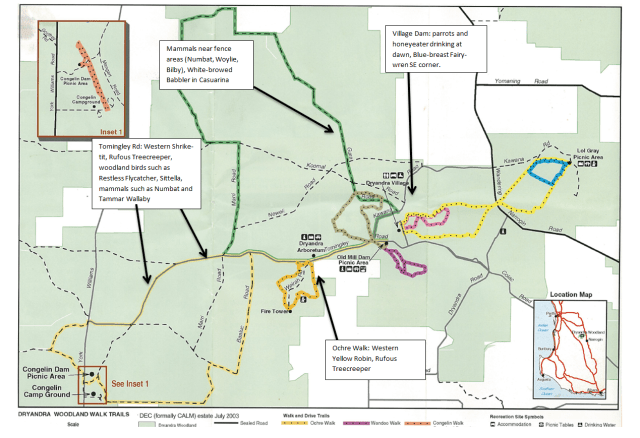 Our itinerary was to fly 4000 km from Melbourne (Victoria) to sunny Perth in Western Australia. From Perth we’d travel 500 km south to coastal heathland just east of Albany. On the way we’d stop at Dryandra Woodland. Dryandra is not only an excellent mid-point between the southern coast and Perth but also a significant birding site.