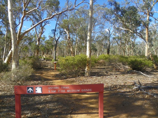 Rufous Treecreeper was conspicuous at the Dryandra Arboretum (a collection of native trees) and the start of the Ochre Walk on Tomingley Rd – it ringing call being almost continuous. Along the start of the walk we got onto Western Yellow Robin – about 150 metres south of Tomingly Rd (you can see a small ridge line on the south-west side of the track) – the race (griseogularis) of the robin in the south-west has a bright rump. The Ochre Trail is also a reliable walk to see Numbat.