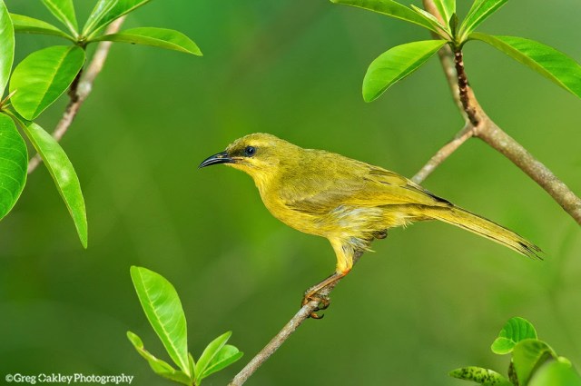 | Yellow Honeyeater. Cumberland Dam and Karumba represent the edge of this birds distribution. Image Greg Oakley |