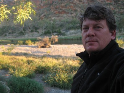 | Selfy: on banks of Finke River, looking tired after a long day . |