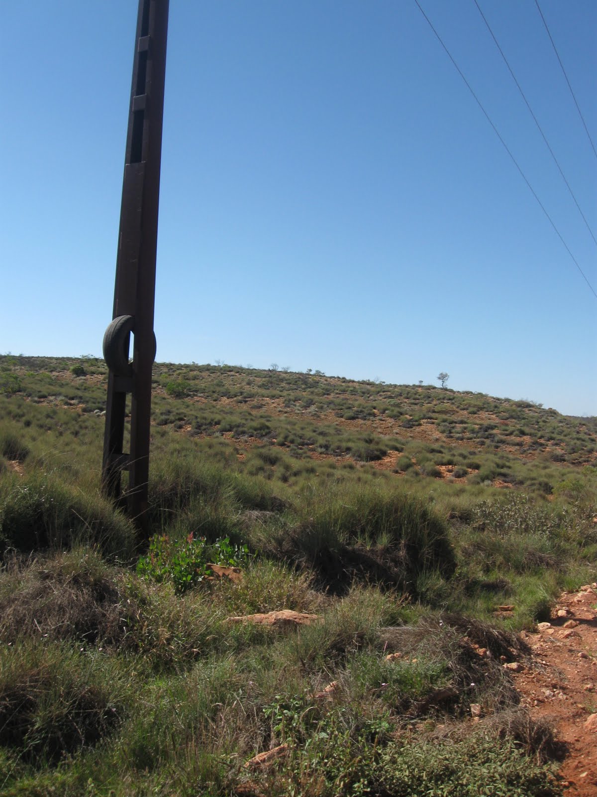 | Tyre in a telegraph pole, Santa Teresa Rd. |