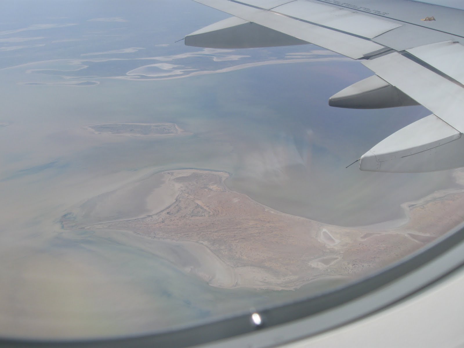 | From 39,000 ft – almost full Lake Eyre on the flight to Alice Springs. |