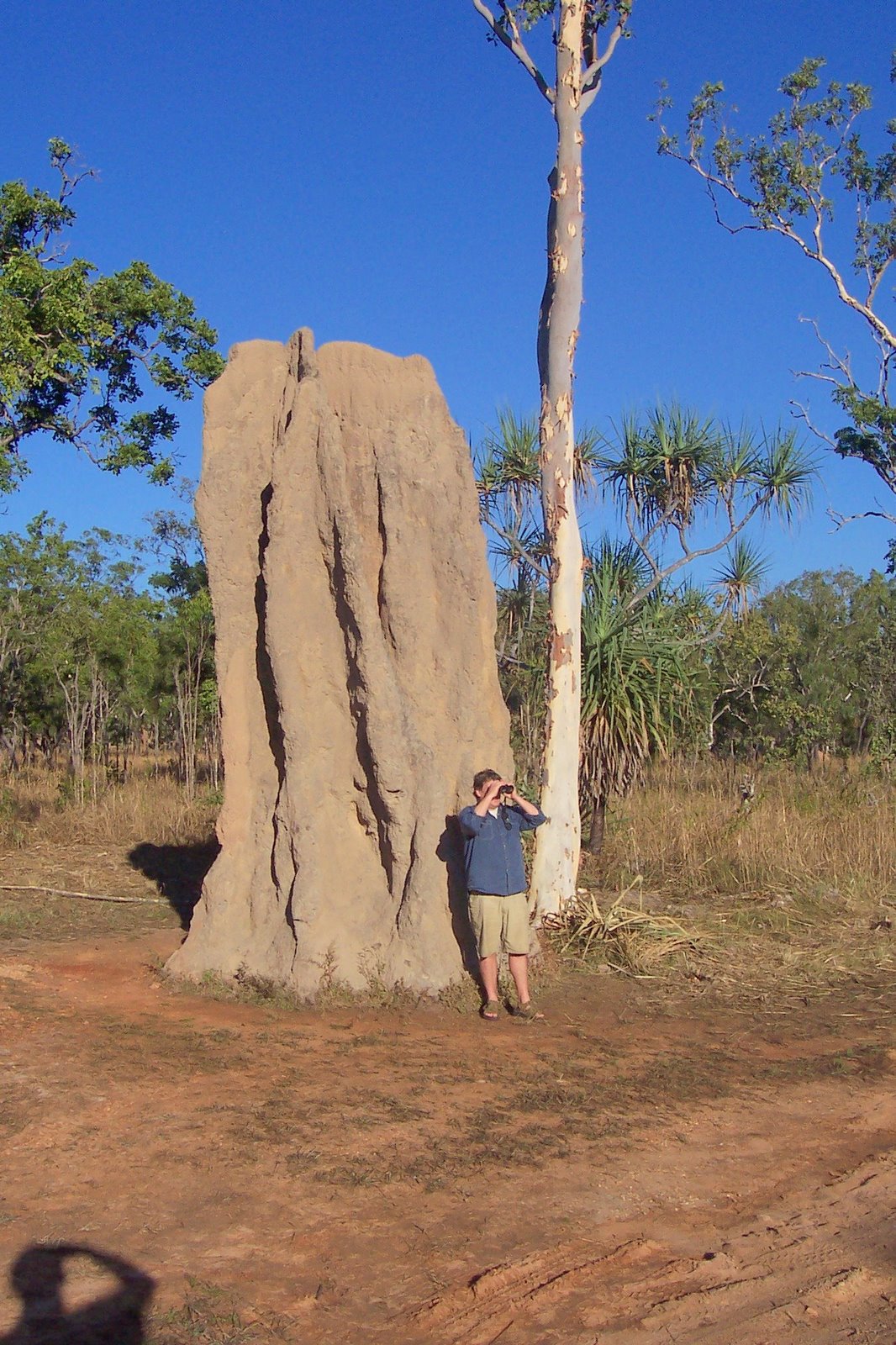 | Tim Dolby birding Kakadu. No trip report to Kakadu would be complete without an image of someone standing in front of an enormous termite mound! |