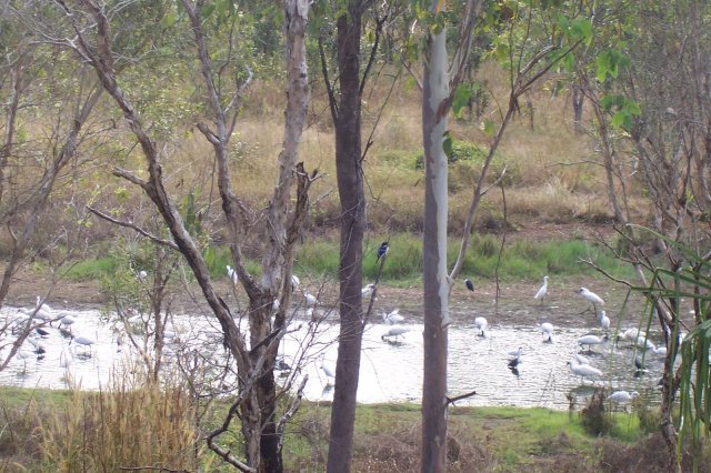 Just west of the Pandanus Lookout is a causeway that on occasions can teem with birdlife, especially fish eating species that congregate for the easy pickings. Here a great flocks of Pied Heron, Intermediate and Great Egret feed on smaller fish. South of the lookout (across a small bridge) in the first section of forest there was a Nankeen Night-Heron roost. Birds of prey hunting over the wetlands include Swamp Harrier, Whistling and Black Kite, White-bellied Sea-Eagle and Pacific Baza. Also seem at Fogg Dam were several Freshwater Crocodile, and near first car park there was a very loud family of Wild Pig.