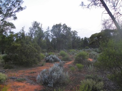 The Babbler Camp South Walk, about 3 km long, passes through an excellent Black Oak (Casuarina pauper) open woodlands, with a nice range of shrubs as an understorey, such as Wait-a-while (Acacia colletioides), Spinebush (Acacia nysophylla), Bullock Bush (Alectryon oleifolius), and Desert Cassia (Senna artemisioides).