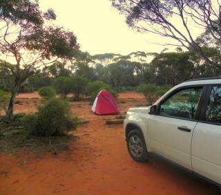 One of the great experiences at Gluepot is waking up on a sunny morning at the Babbler Campsite after a cold night. During the night the temperature dropped to an impressive minus 5 degrees celsius! Our tents were completely covered in ice. Fortunately I’d planned for this. I deliberately packed two sleeping bags and two self-inflating air mattresses. During the night I was actually warm.