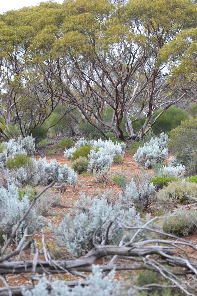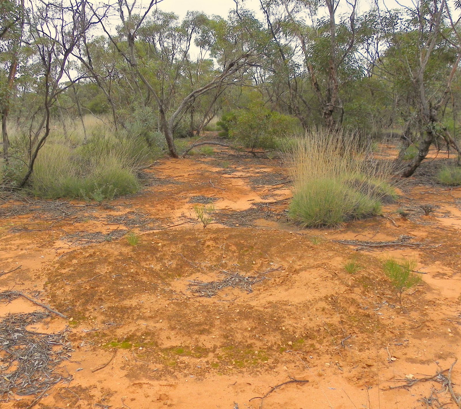Due to recent rains, the ground surface along both walks was covered with an extremely complex cryptogamic crust. Microscopic plants, such as small mosses, lichens and algae together with slime from bacteria and fungi, formed a fantastic skin-like coating over the ground at Gluepot, literally holding the soil together. Of interest, it is not surprising that the greatest biodiversity on Earth is within 2 cm of the soil surface.