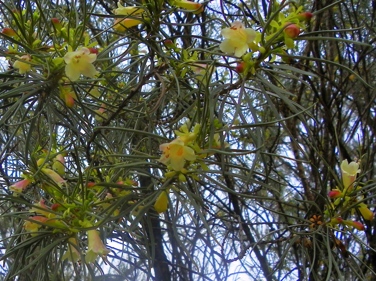 The Babbler Camp South Walk, about 3 km long, passes through an excellent Black Oak (Casuarina pauper) open woodlands, with a nice range of shrubs as an understorey, such as Wait-a-while (Acacia colletioides), Spinebush (Acacia nysophylla), Bullock Bush (Alectryon oleifolius), and Desert Cassia (Senna artemisioides).