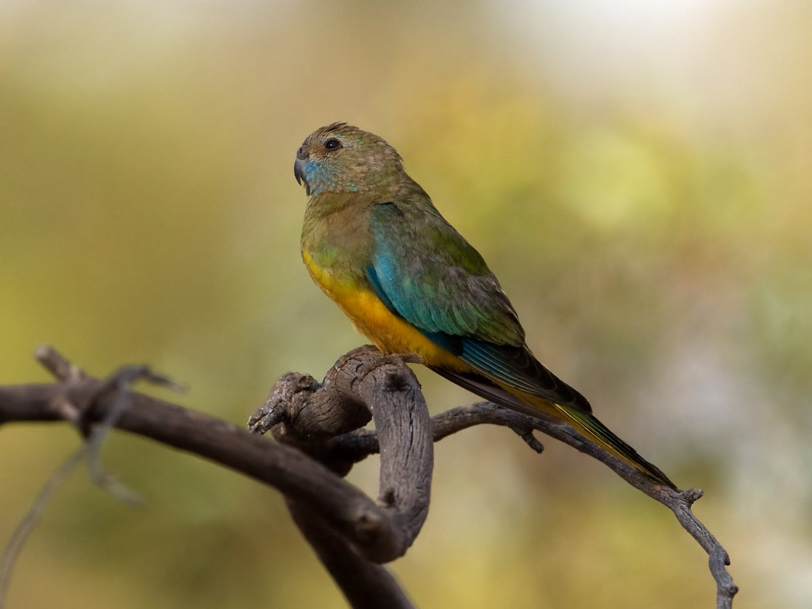 We were fortunate to see a large flock of approximately 20 Scarlet-chested Parrot, mostly immature and female birds, with a couple showing reddish coloring on the chest. We got these on a track east of the Information Centre. As mentioned, they’d also been seen at Gluepot three weeks earlier, however the observer had informed me that he’d looked for them many times since and they’d obviously left the area. While driving to through Gluepot I said “What we need right now is a large flock of Scarlet-chested Parrot on the road directly in front of us.” A minute later a large flock of Scarlet-chested Parrot came screaming down the track directly in front of us, and then flew around the car, some so close that I had to check the grill to see if we’d cleaned any up.