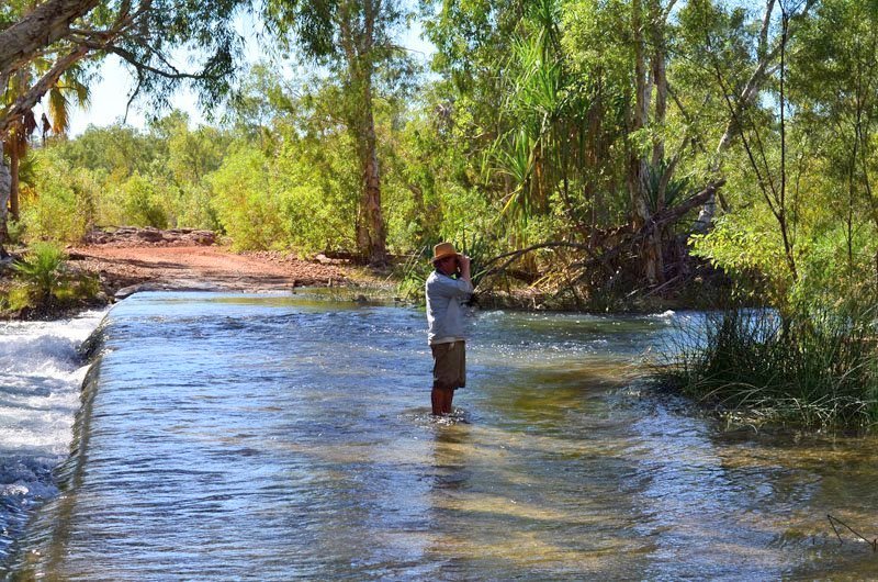 We concentrated most of our birding along the deep blood-red gorge between the Indarri Falls and the Upper Gorge Lookout. The area here is spectacularly beautiful, possibly the most sublime place I’ve ever seen! Along the creek we searched in the Pandanus and canegrass for Purple-crowned Fairy-wren (ssp macgillivrayi), where they were quite common – with a family every 100 m or so. At this time of year they were in non-breeding plumage. A unique species amongst fairy-wren, and birds generally: most species when they go into eclipse, non-breeding plumage, simply revert to a dull grey form of their original self. Purple-crowned Fairy-wren, by contrast, completely change into another bird, with plumage almost as interesting in eclipse as when they breed. Other birds along the creek included White-bellied Sea-Eagle, Azure Kingfisher, Blue-winged Kookaburra, Buff-sided Robin, Olive-backed Oriole, Paperbark Flycatcher, Northern Fantail and Crimson Finch.