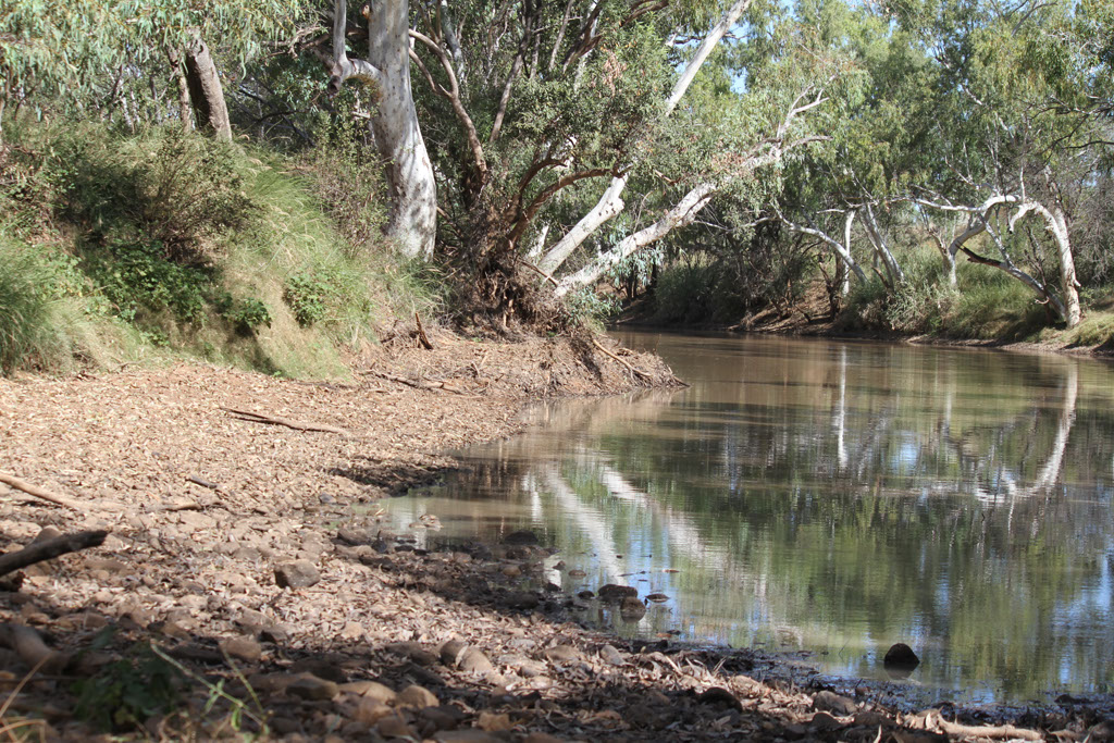 From Chinaman Creek Dam we headed down to Bladensburg National Park. It’s a large, very pleasant and remote park with areas of sandstone ranges, grassland plains and river flats – it reminded me of Wyperfeld National Park in Victoria. To get there we drove south from Winton taking the Winton-Jundah Rd, and after 7 km turned left onto the ‘Route of the River Gum’. From there it’s 5 km to a junction – we turned right following the ‘Route of the River Gum’. Here we stayed at the amiable camping ground at Bough Shed Hole, 12 km from the junction. Conventional vehicles can access Bladensburg, and we found it easy going in the X-Trail.