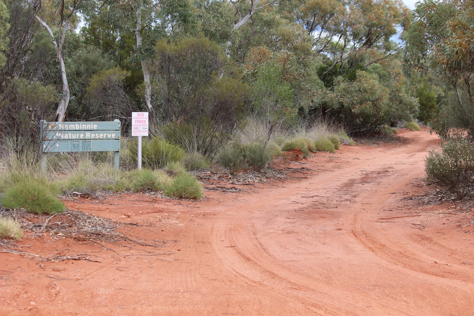 | Nombinnie Nature Reserve. The entrance to Cactus Track, the access track to the old wheat paddock. |