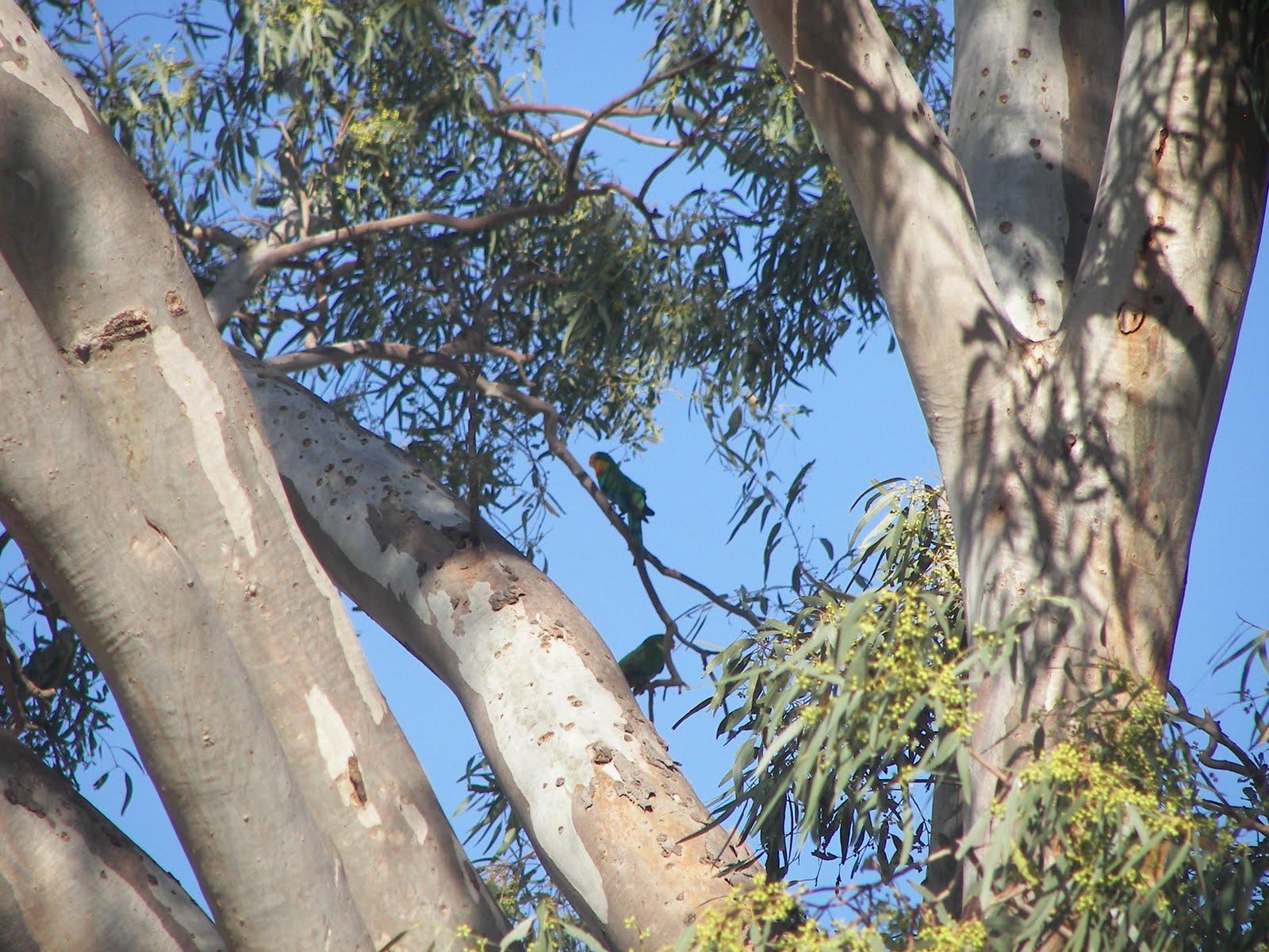 Expectedly fairly quiet, with no flowering Eremophila (Long-leafed Emu-bush). Birds seen included Blue Bonnet, Pied Butcherbird, and a Owlet Nightjar seen during the day, sitting nicely in it mallee tree hole. Nearby Lake Boga was complete dry. There were several White-breasted Woodswallow on powerlines in the main street of Lake Boga, and earlier I saw Blue-faced Honeyeater in Kerang.